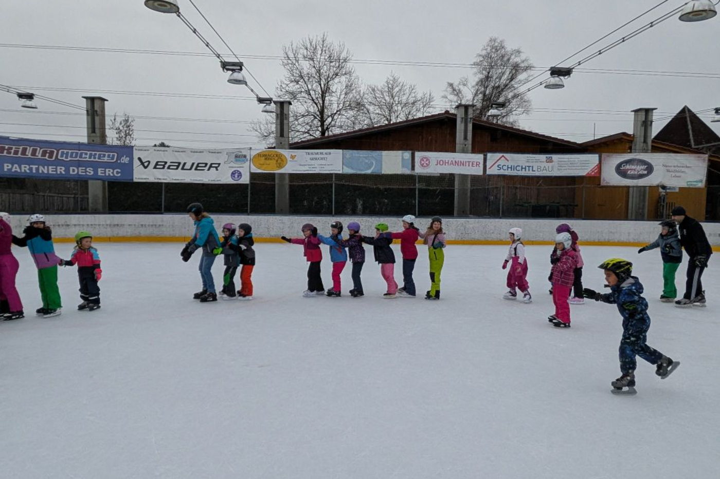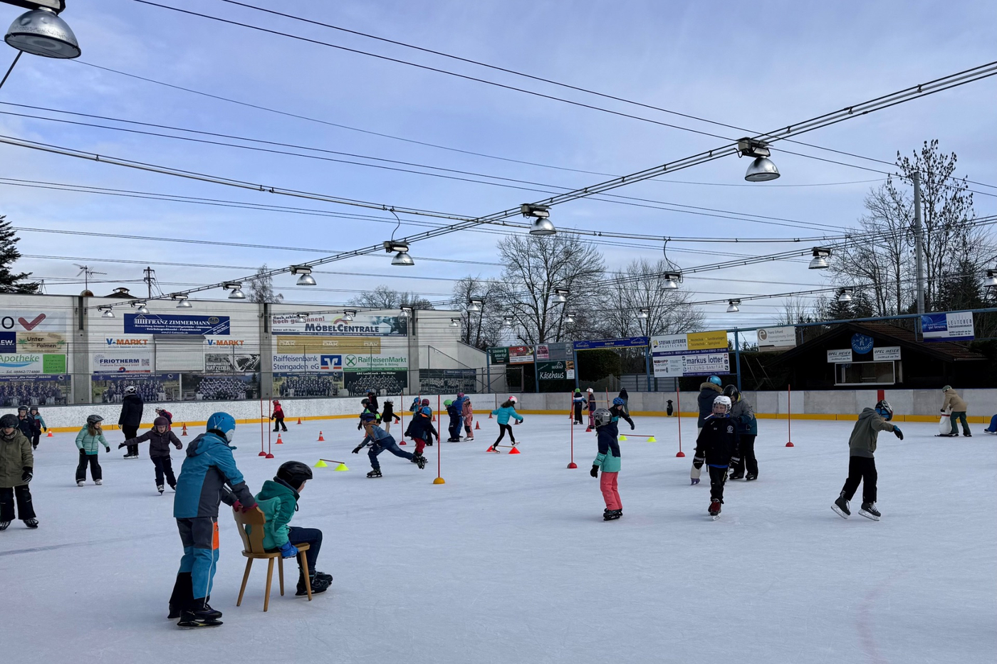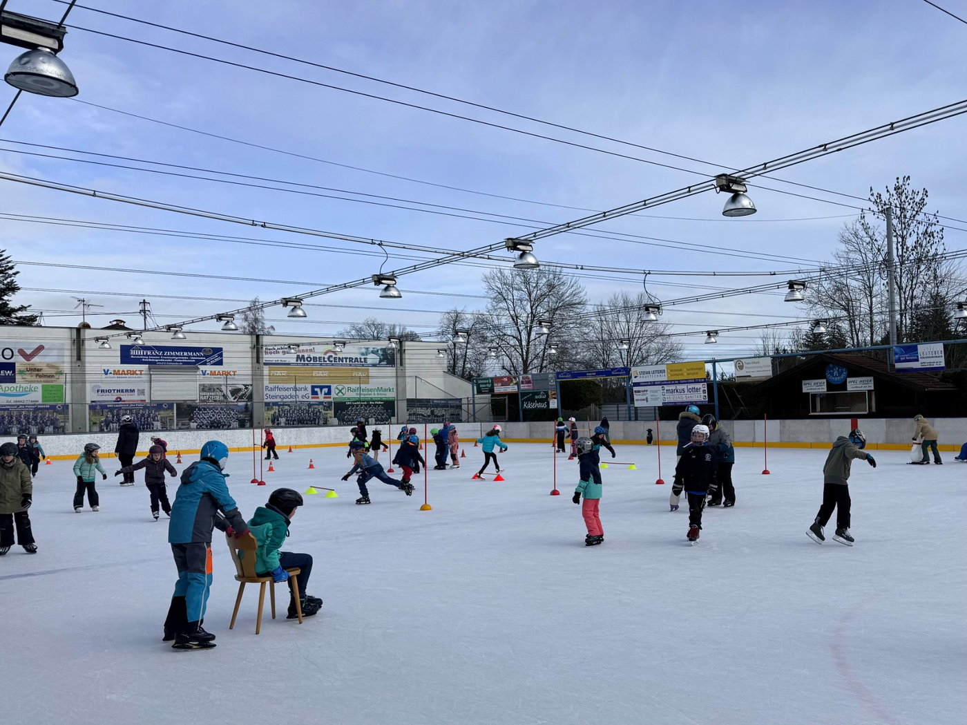 Eisstadion in Lechbruck. Dort warteten bereits zahlreiche Eltern auf uns, die unterstützten wo sie
