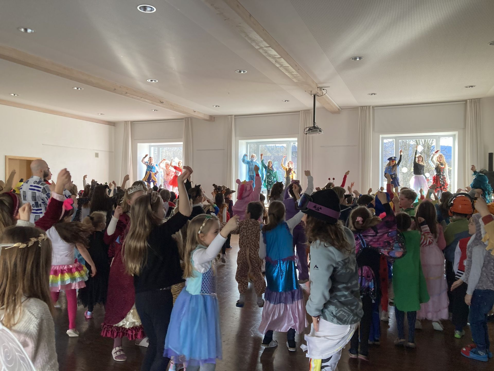 Am “rußigen Freitag” und somit letzten Schultag vor den Faschingsferien ging es in der Grundschule in Steingaden lustig zu. Nachdem zuerst alle Grundschüler und Lehrer eine Polonaise durch das Schulhaus inklusive Gemeinde machten, stand anschließend die große Tanzparty in der Aula auf dem Programm. Viele Mitmachlieder und altbekannte sowie aktuelle Faschingshits heizten den Schülern kräftig ein und man konnte jedem den Spaß ansehen. Zum Schluss gab es für jeden Schüler und Lehrer einen Faschingskrapfen vom Elternbeirat spendiert. Vielen Dank dafür.
