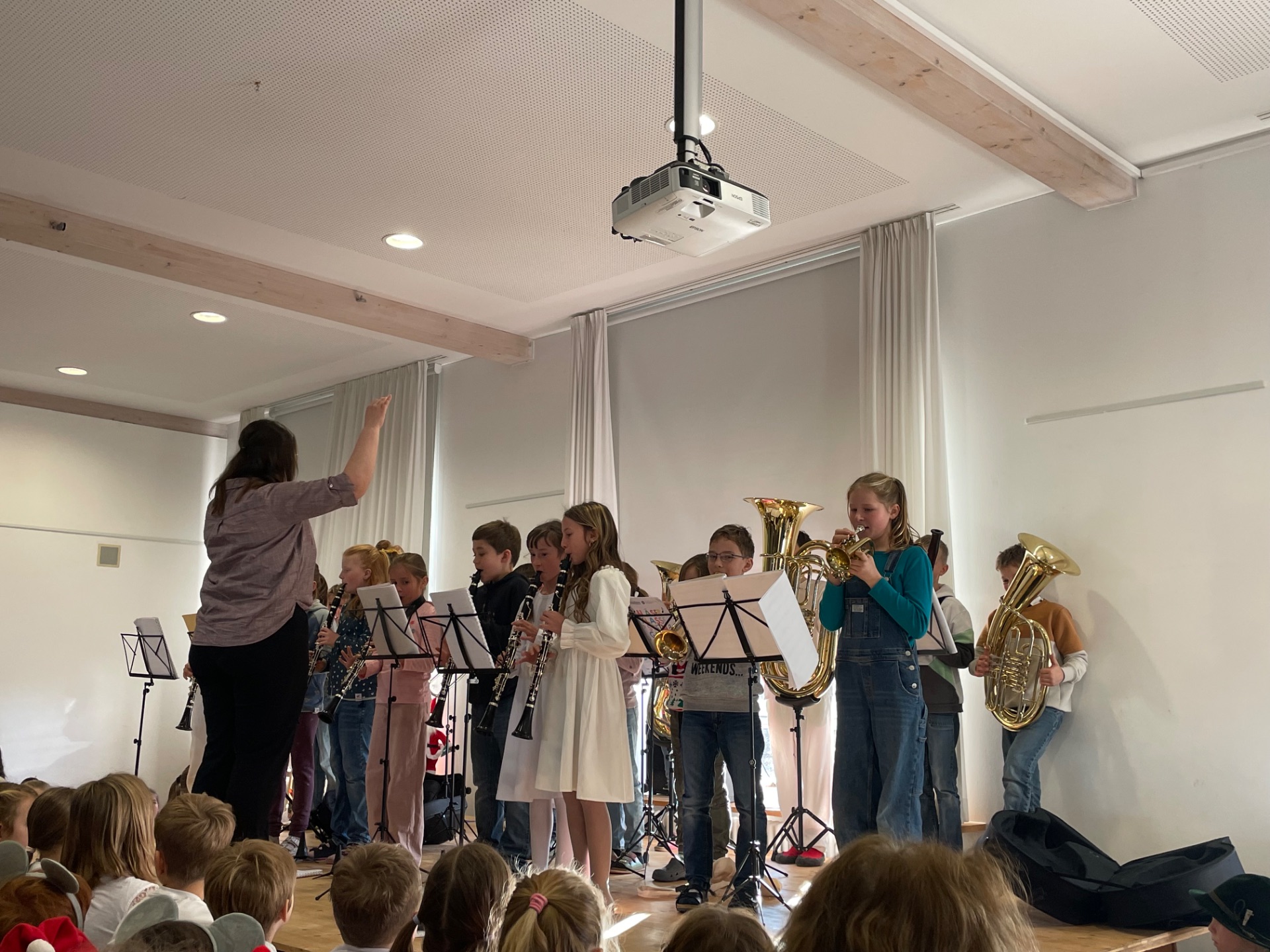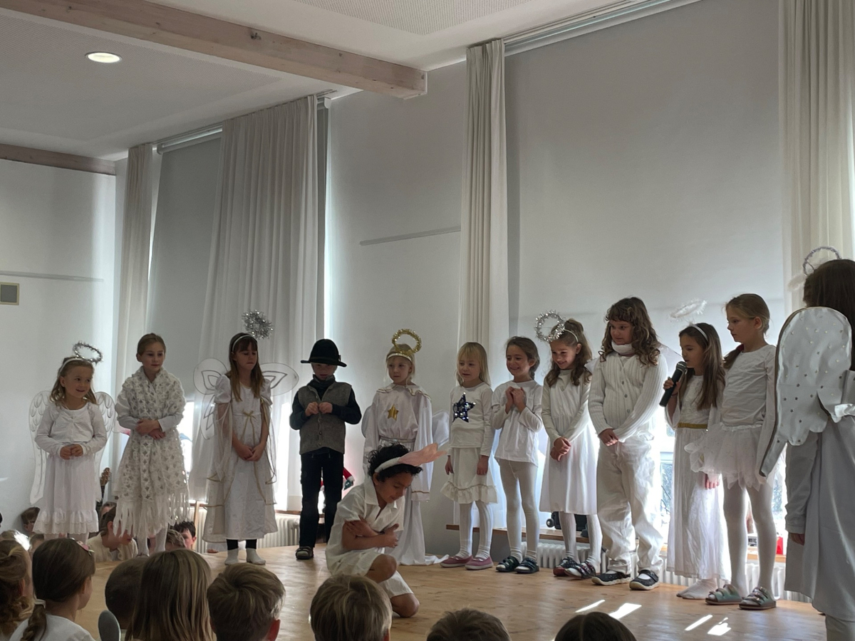 Zahlreiche Eltern besuchten die Schule, um Ihre Kinder auf der Bühne zu erleben. Auf dem Programm standen verschieden Darbietungen wie Weihnachtslieder, Lichtertanz, Weihnachtstheater, Gedichte, Weihnachtsrap auf Englisch und eine Musicalaufführung. Die Bläserklasse konnte schon weihnachtliche Musikstücke vorspielen, obwohl sie erst vor drei Monaten zu spielen begannen.
